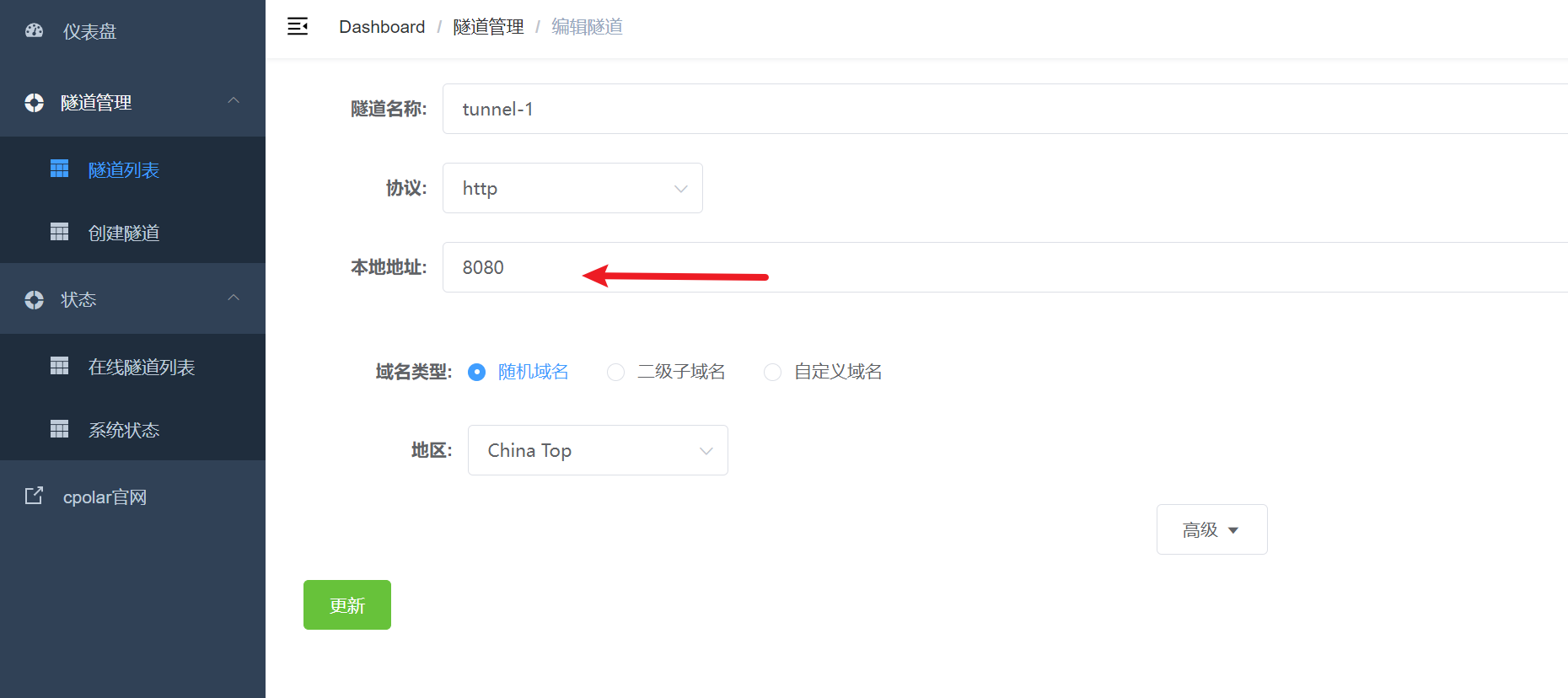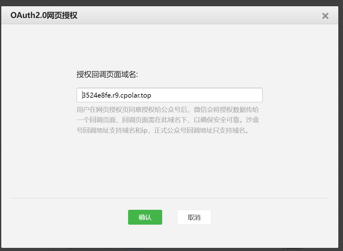 2. 接口配置信息,URL需要搞一个内网穿透,打通你的电脑和微信之间的网络,这个很简单,下载:https://www.cpolar.com/这个应用,里面配置把你的本地服务端口给代理出去,URL可能用https会有问题,换http的试试,https-443,http80,你的服务是80,所以可能会有问题。